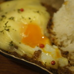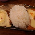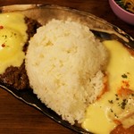 ちぃりんご - 「キーマとチキンのあいがけカレー」1100円+「フライパンでとかしたとろーりチーズ」180円